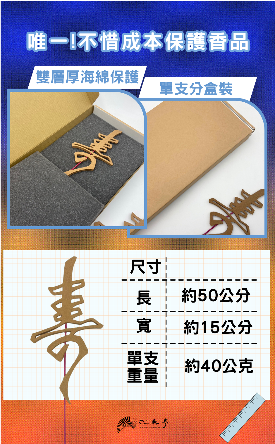 ●禮盒內含三支書法香,商品易碎故分盒包裝,請小心拿取